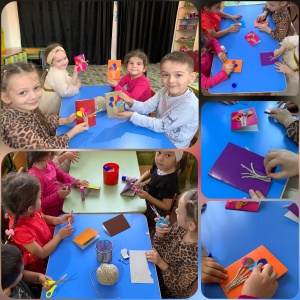 Тема: "Изготовление поздравительных открыток для мам и бабушек".Цель: развитие у детей художественно-творческих способностей.